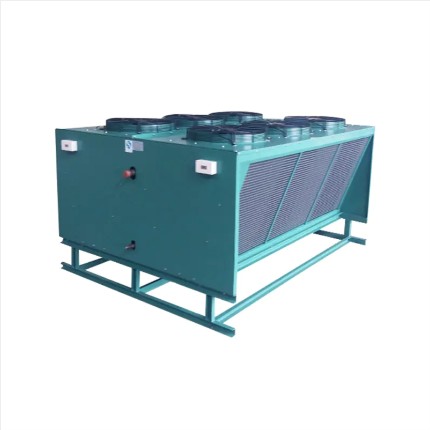 Il tipo più utilizzato a livello globale. L'aria ambiente viene forzata sulle batterie alettate da uno o più ventilatori. Non sono necessarie infrastrutture idriche , rendendo l'installazione semplice e riducendo i costi di manutenzione. La serie di condensatori raffreddati ad aria di Brozercool utilizza batterie ad alette di alluminio con tubi di rame ad alta efficienza con motori dei ventilatori EC, raggiungendo tassi di rifiuto del calore specifici superiori a 1,8 kW/m².